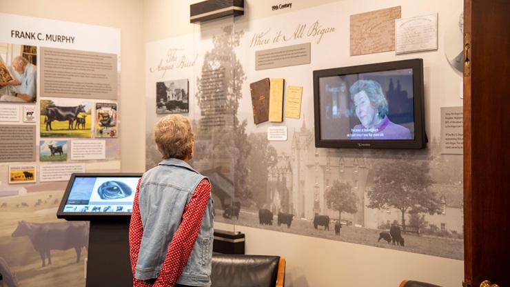 Angus breeders who have made a mark on history are highlighted as a part of the interactive display in the library. For example, members of the Angus Heritage Foundation are innovators and visionaries within the breed. Visitors can scroll through the honorees, read their stories and watch videos, learning about their contributions to the Association and Angus history.
