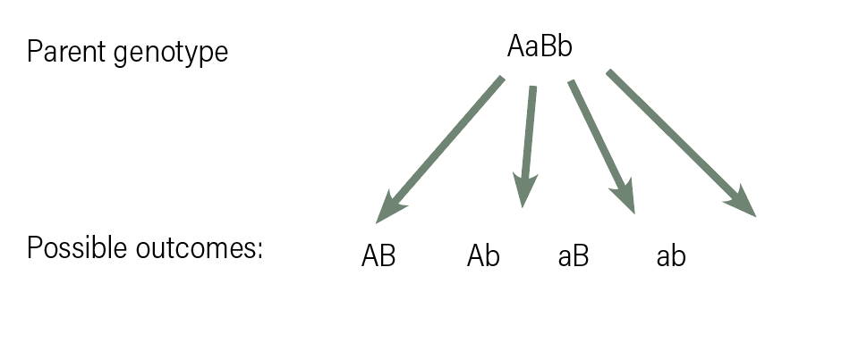 FIG. 1: Example of Mendelian assortment for a two-locus trait showing four possible gamete combinations when a parent is heterozygous (AaBb).